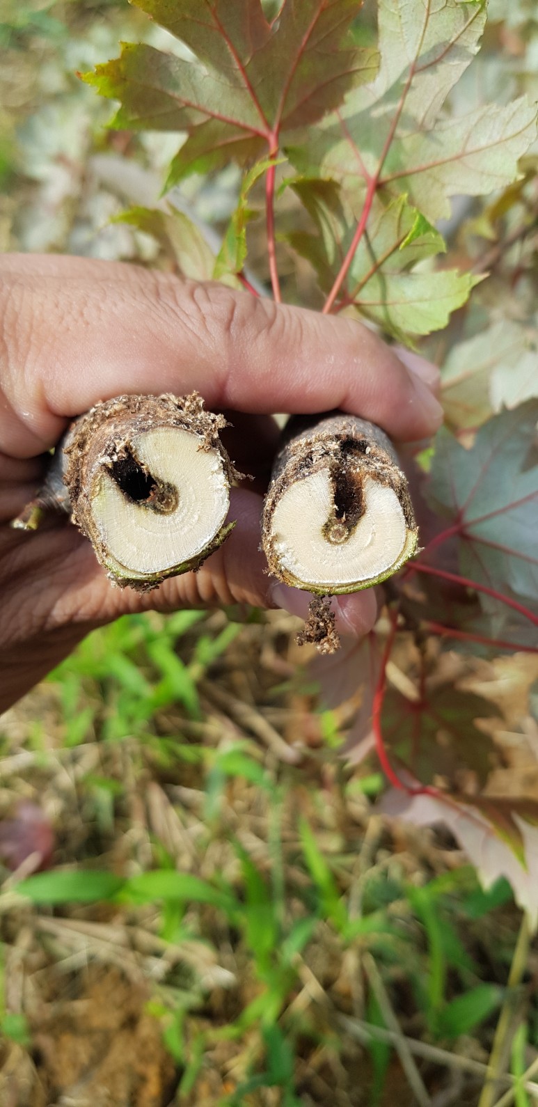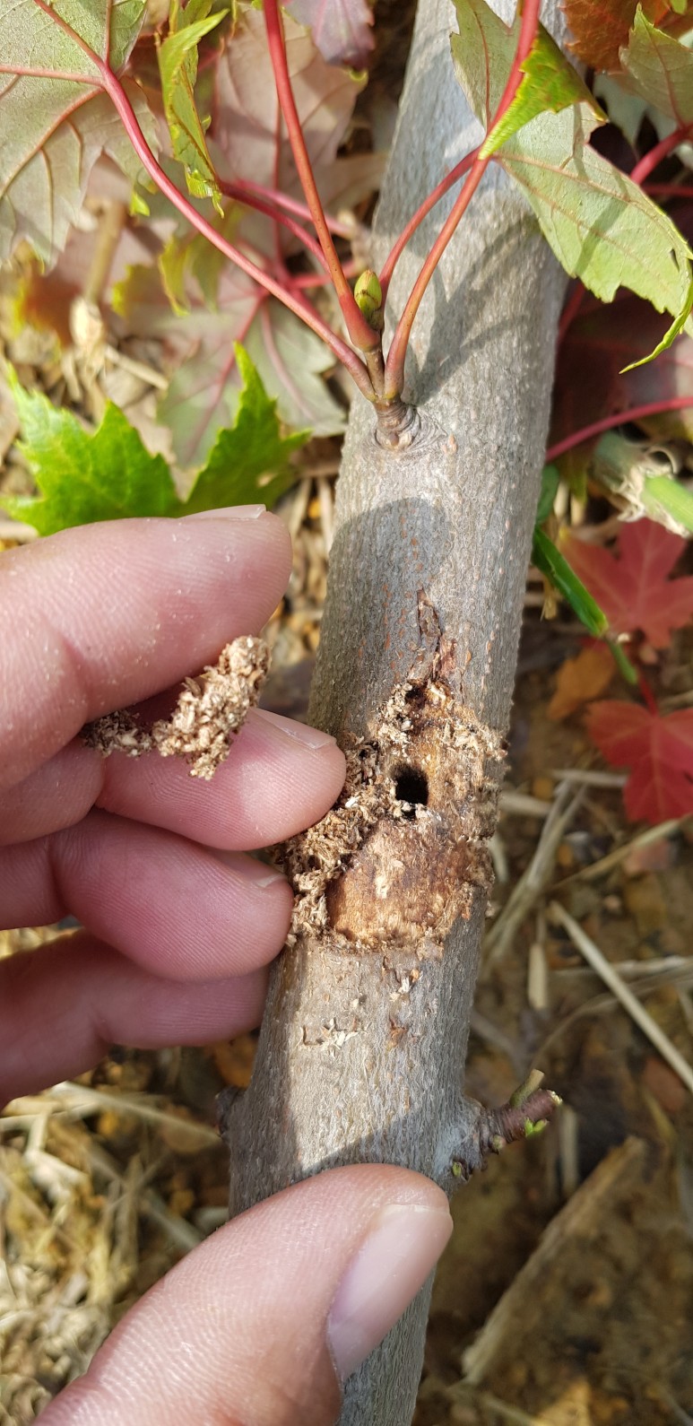 박쥐나방 유충에 의한 피해 사진입니다.